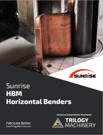The SUNRISE hydraulic bending machines, available in either 45 or 82 tons, offer a wide range of tooling for different bending operations. Custom tooling is also available.