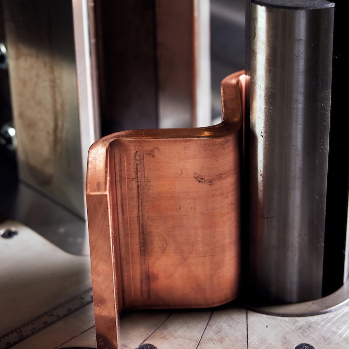 The CNC back gauge extends the accuracy and efficiency of the HBM and is available in both 1m and 2m configurations. With an accuracy of ±0.004″ and 40’/min travel speed, when combined with the digitally controlled cylinder travel, it achieves complex bending work with ease. Control memory can store up to 99 programs with 10 bends each for quick and easy programming of multiple jobs.